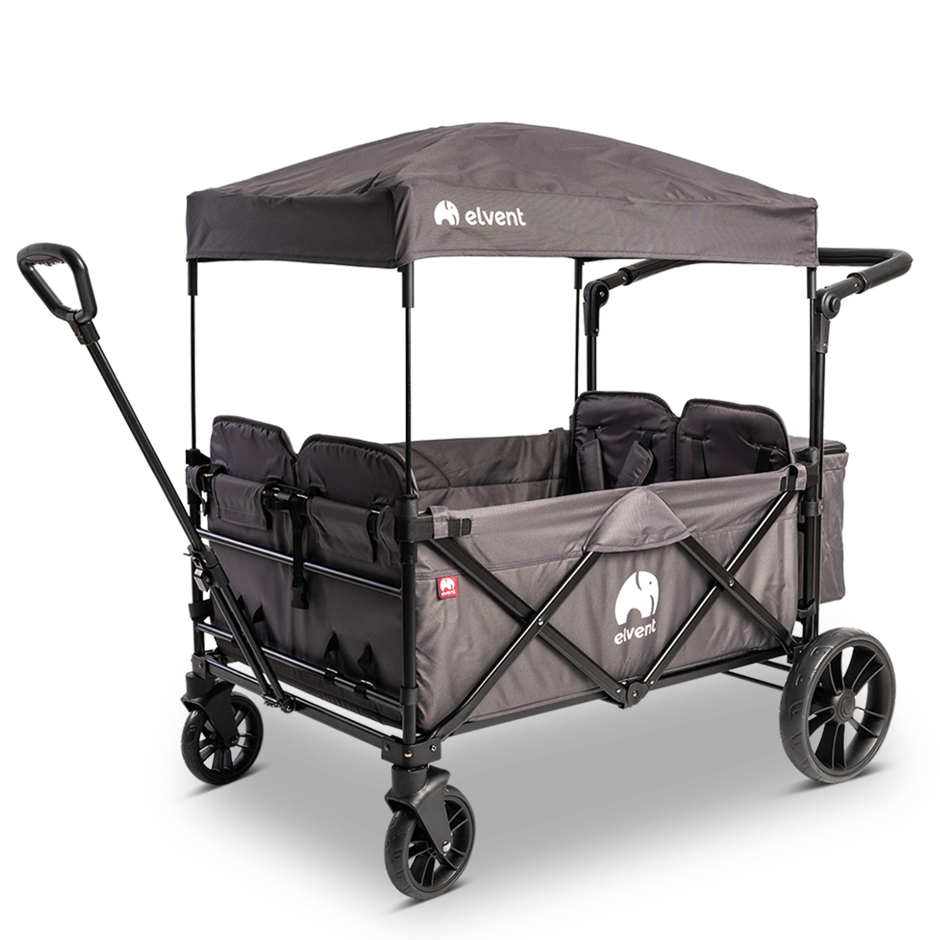 Der kostengünstigste elvent Bollerwagen ist das Zweisitzer-Einsteigermodell. Gegen einen geringen Aufpreis sind Sitzpolster, eine Aufbewahrungstasche und ein Dach erhältlich.Wo kann man einen Bollerwagen erwerben?