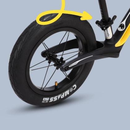 Ein weiterer Hinweis auf Qualität ist das eingesetzte Material und damit verbunden das Gewicht des Laufrades. Billige Legierungen sind oft schwer, spröde und können rosten. Der Rahmen des Laufrades BalanceGo dagegen ist aus einer hochwertigen, ultraleichten Magnesiumlegierung hergestellt. Die dicken Luftreifen befinden sich auf schicken Alufelgen, die ebenfalls leicht sind und nicht rosten. Sollte dem Kinderlaufrad einmal die Luft ausgehen, kannst du es ganz leicht wieder aufpumpen. Die Luftbereifung ist mit Schraderventilen ausgestattet. Das sind die gleichen Ventile wie am Auto.
