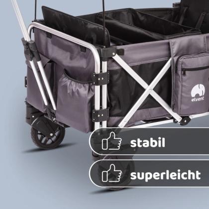 Holz kann durch Feuchtigkeit aufquellen, splitterig werden und ist schwerer. Klappbare elvent-Bollerwagen sind stabil, leicht, einfach zu verstauen und transportieren.Vergleich aller elvent Kinder-Transportwagen