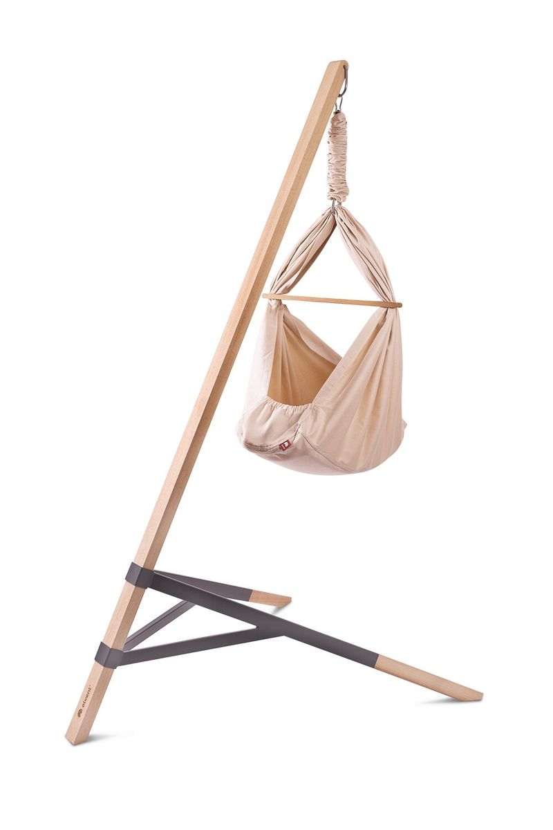 Federwiege aus Baumwolle mit Ständer Naturbeige