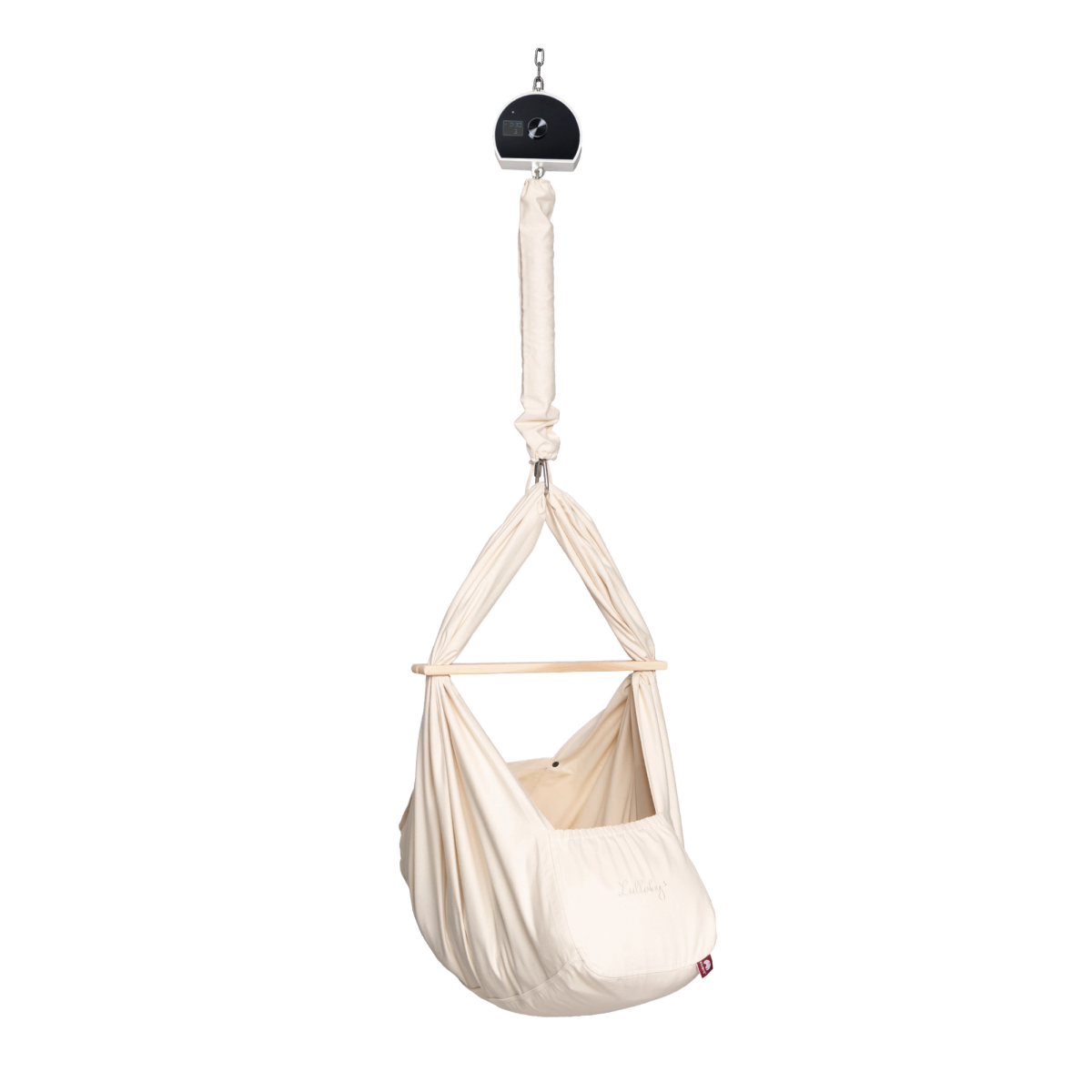 Gestell und Motor sind optional. GS-/TÜV-relevant ist ausschließlich die Nutzung der Lullaby Federwiege mit dem Tripod-Ständer, ohne Motor und ohne Deckenmontage.
