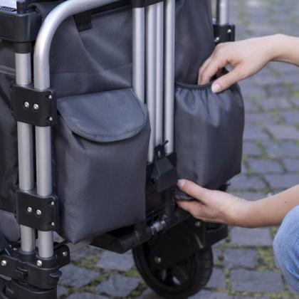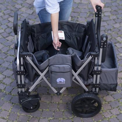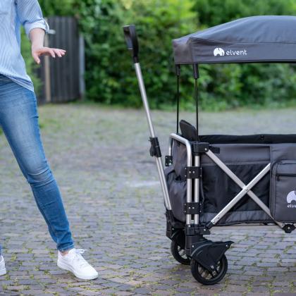 Holz quillt durch Feuchtigkeit auf, es kann sogar stockig werden und die Kinder können sich Splitter ziehen, wenn der Bollerwagen aus Holz beschädigt ist. Die elvent-Bollerwagen sind stabil, mit einem Handgriff eingeklappt – passend für den Kofferraum oder für die platzsparende Lagerung zum Beispiel in der Garage.